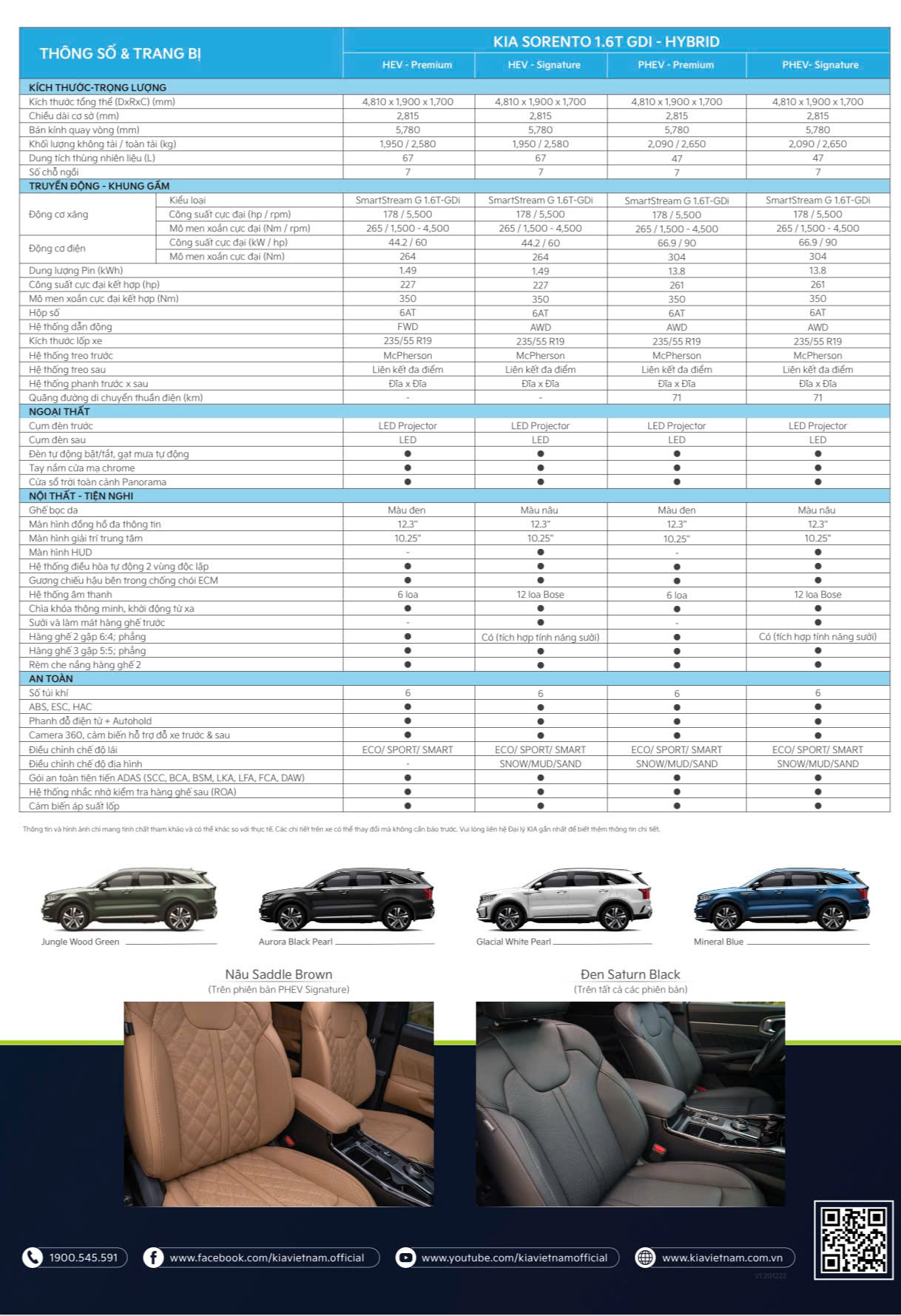 | KIA SORENTO (ALL NEW)- 1.6T PHEV SIGNATURE 7S (NỘI THẤT NÂU): | 1,424 Tỷ đ |